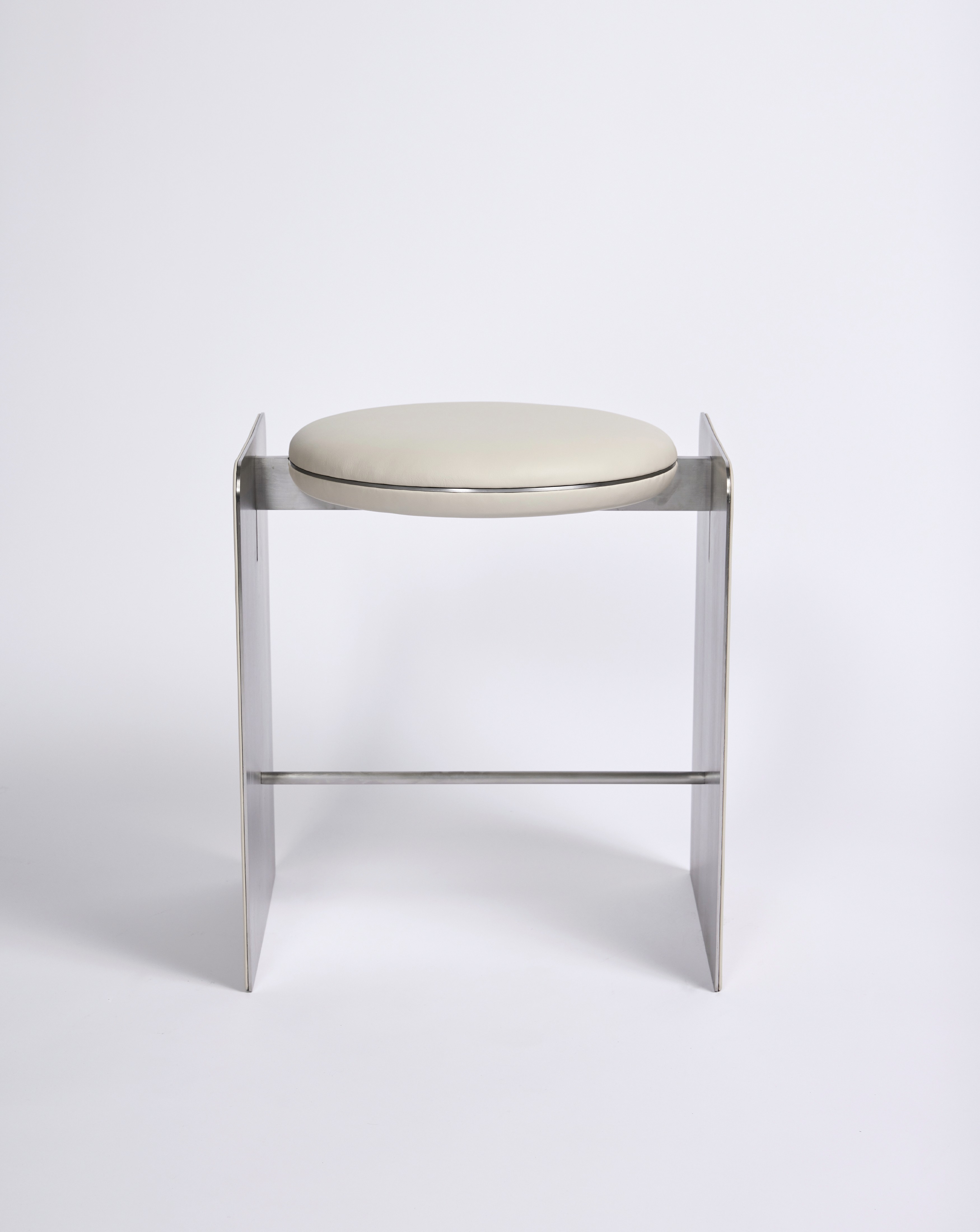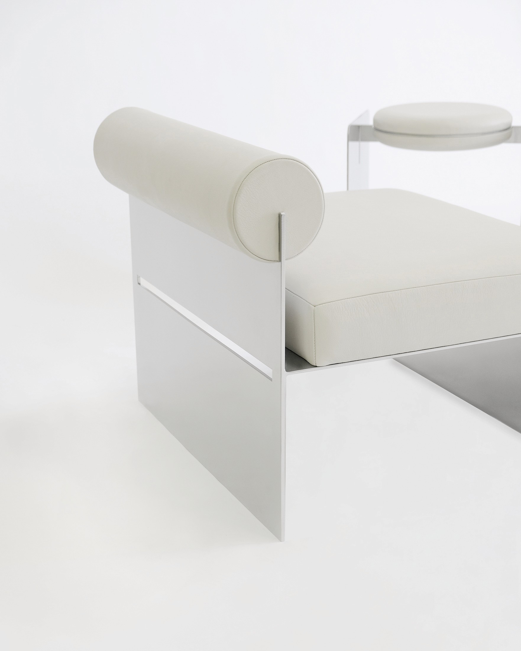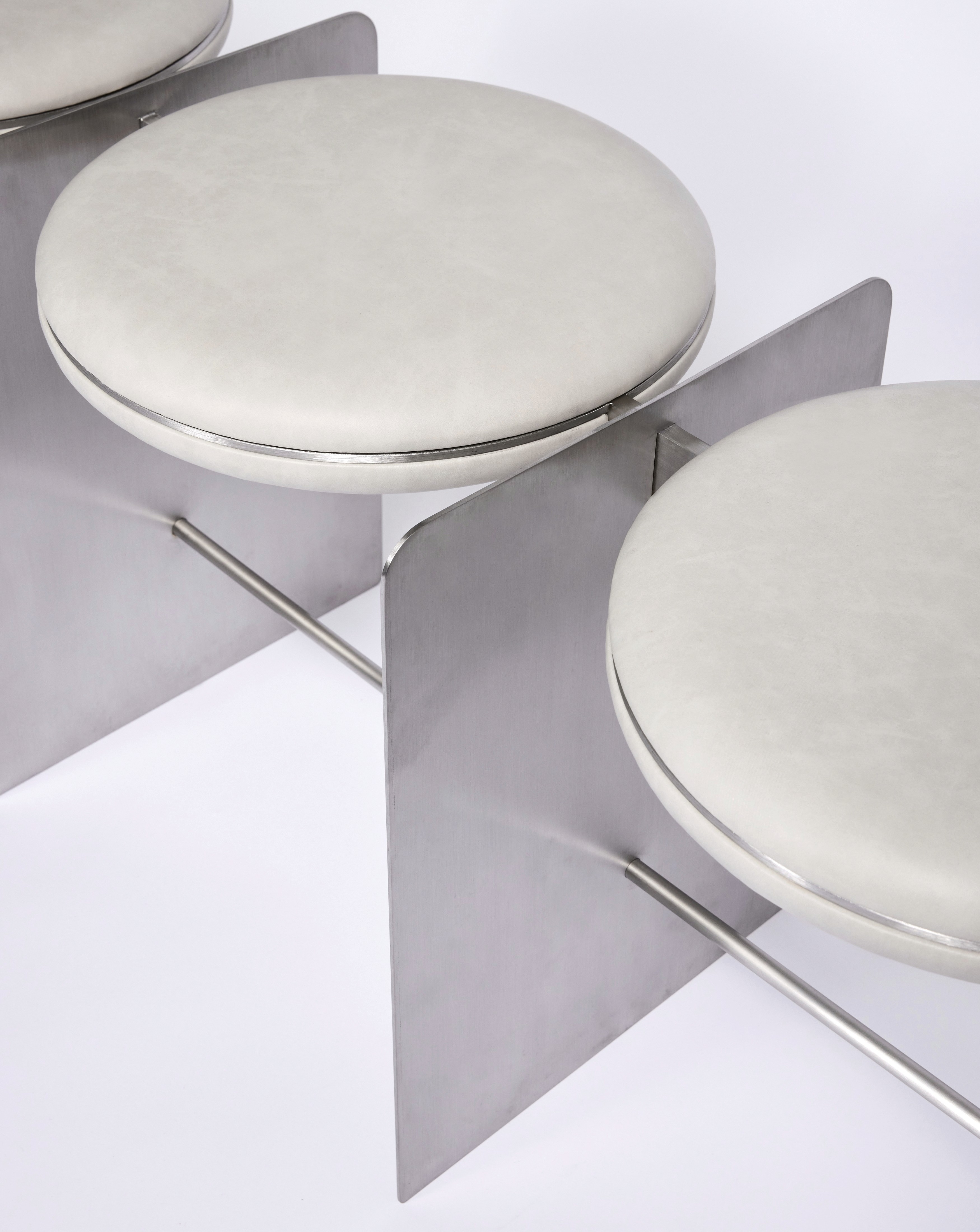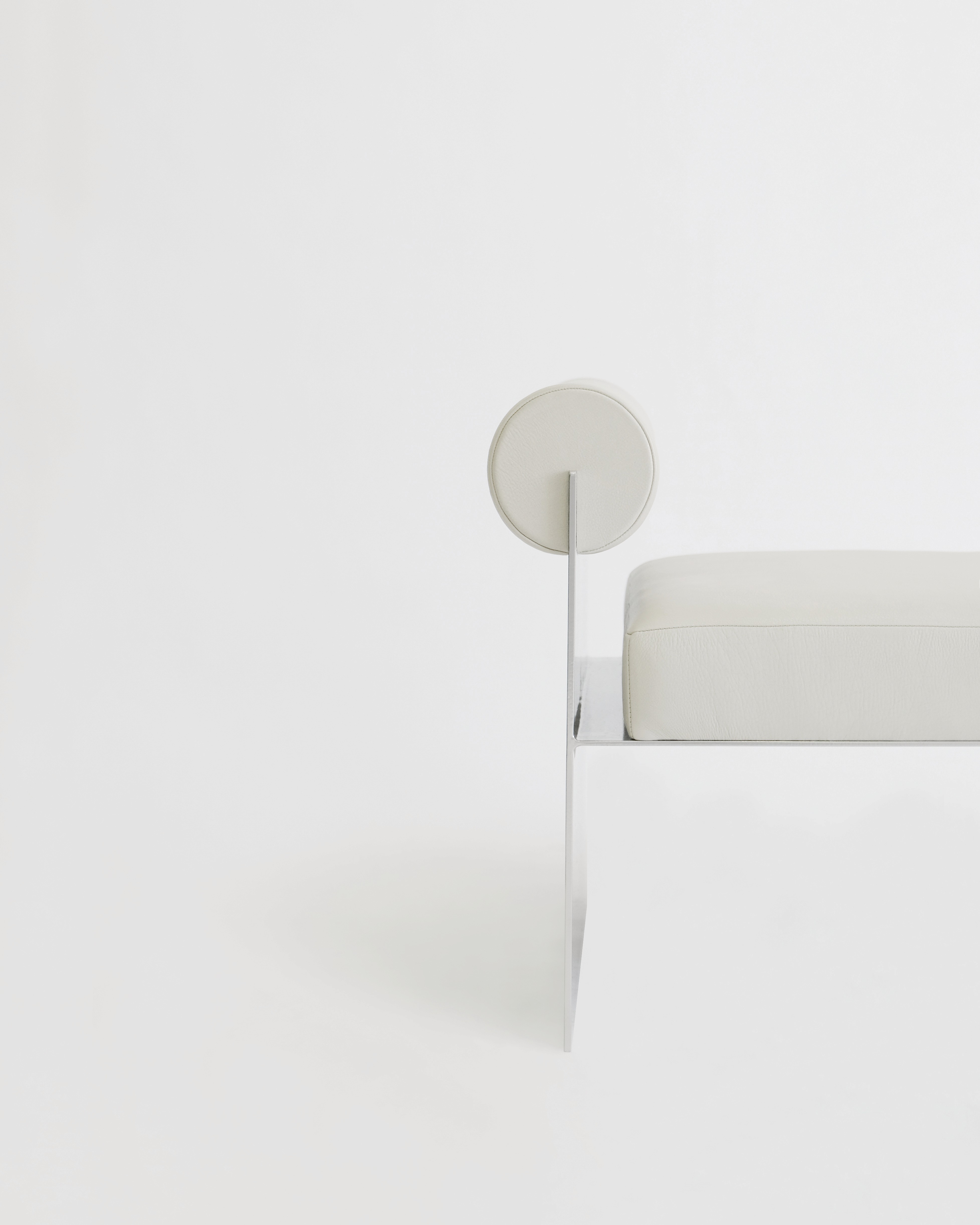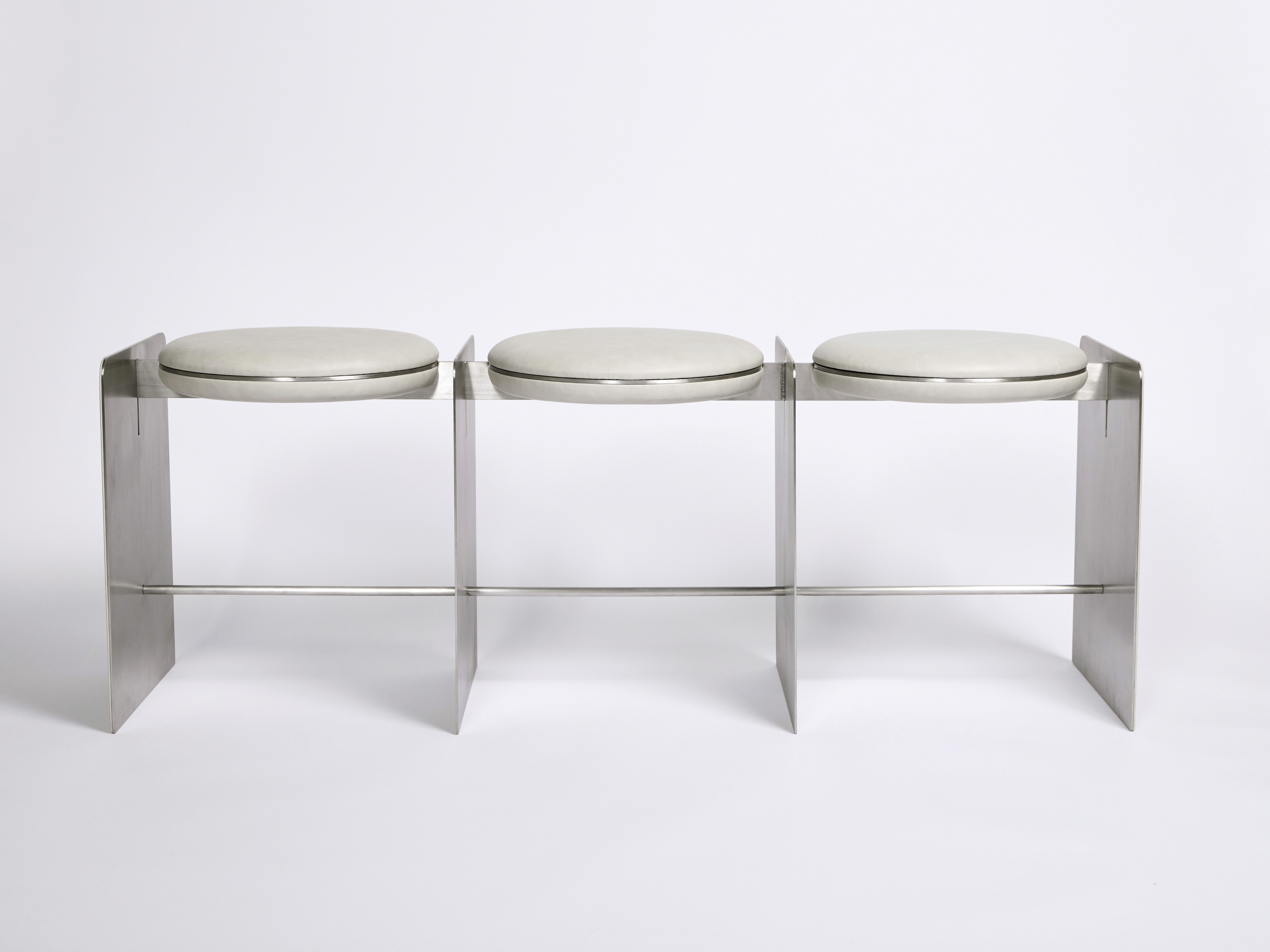 The Side Chair Side Stool / Table 3 Seater Bench Metal base with off-white leather upholstery