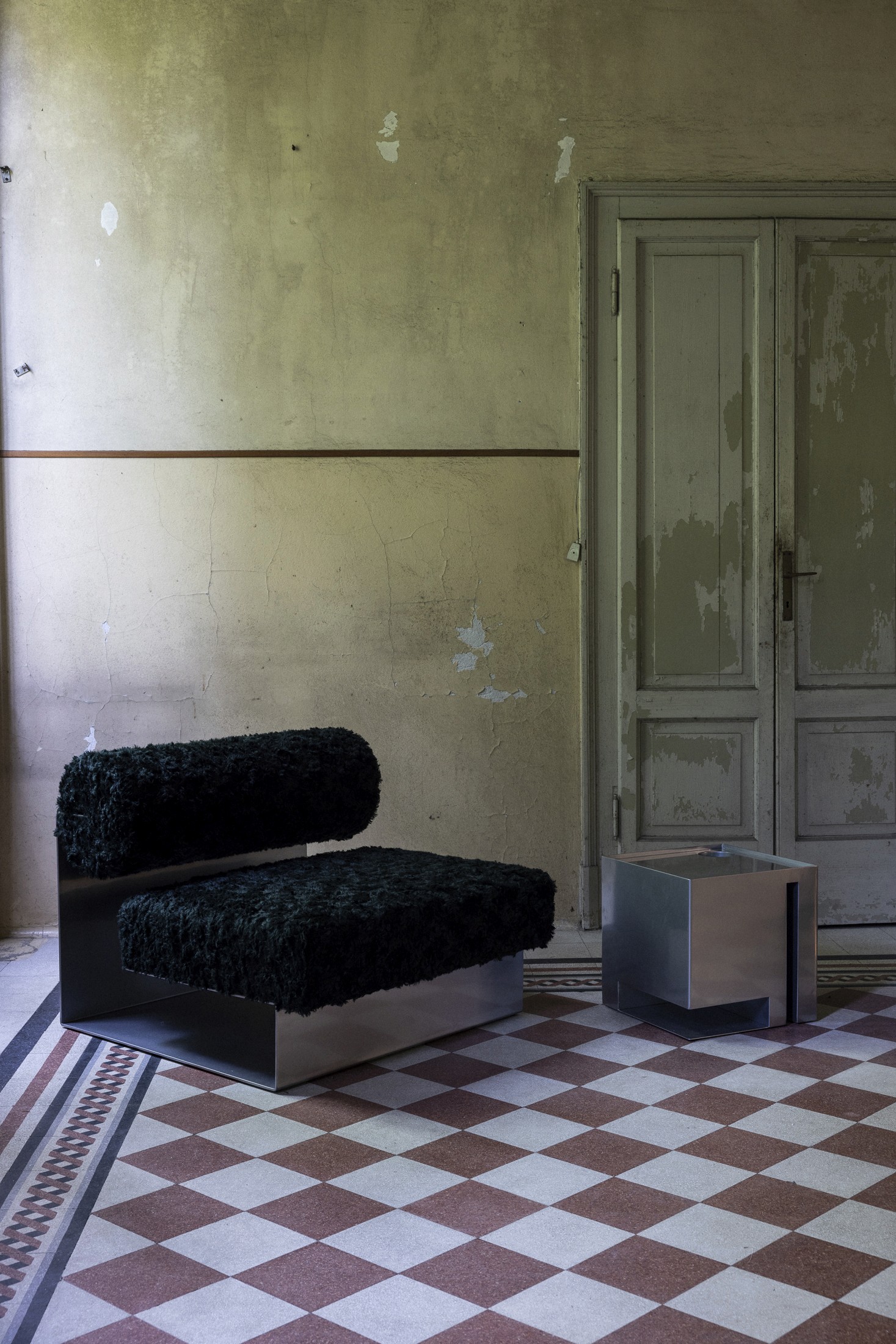 Folds single sofa explores the dichotomies between hard and soft with thin metal sheets and plush cushions. Pairing back the non-essential elements, Folds focuses on pure forms and clean lines, balancing the negative and positive space to highlight the beauty in its apparent simplicity.