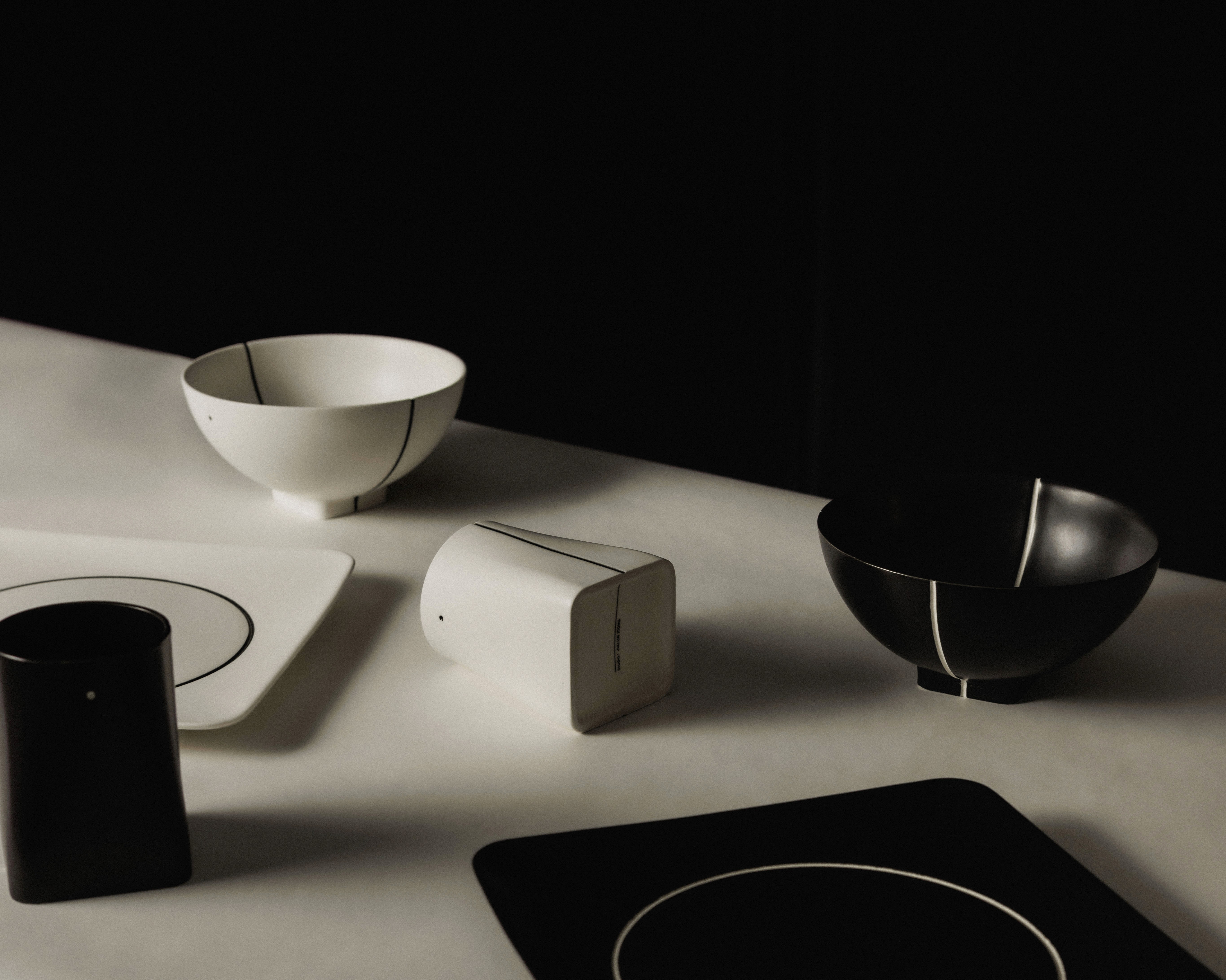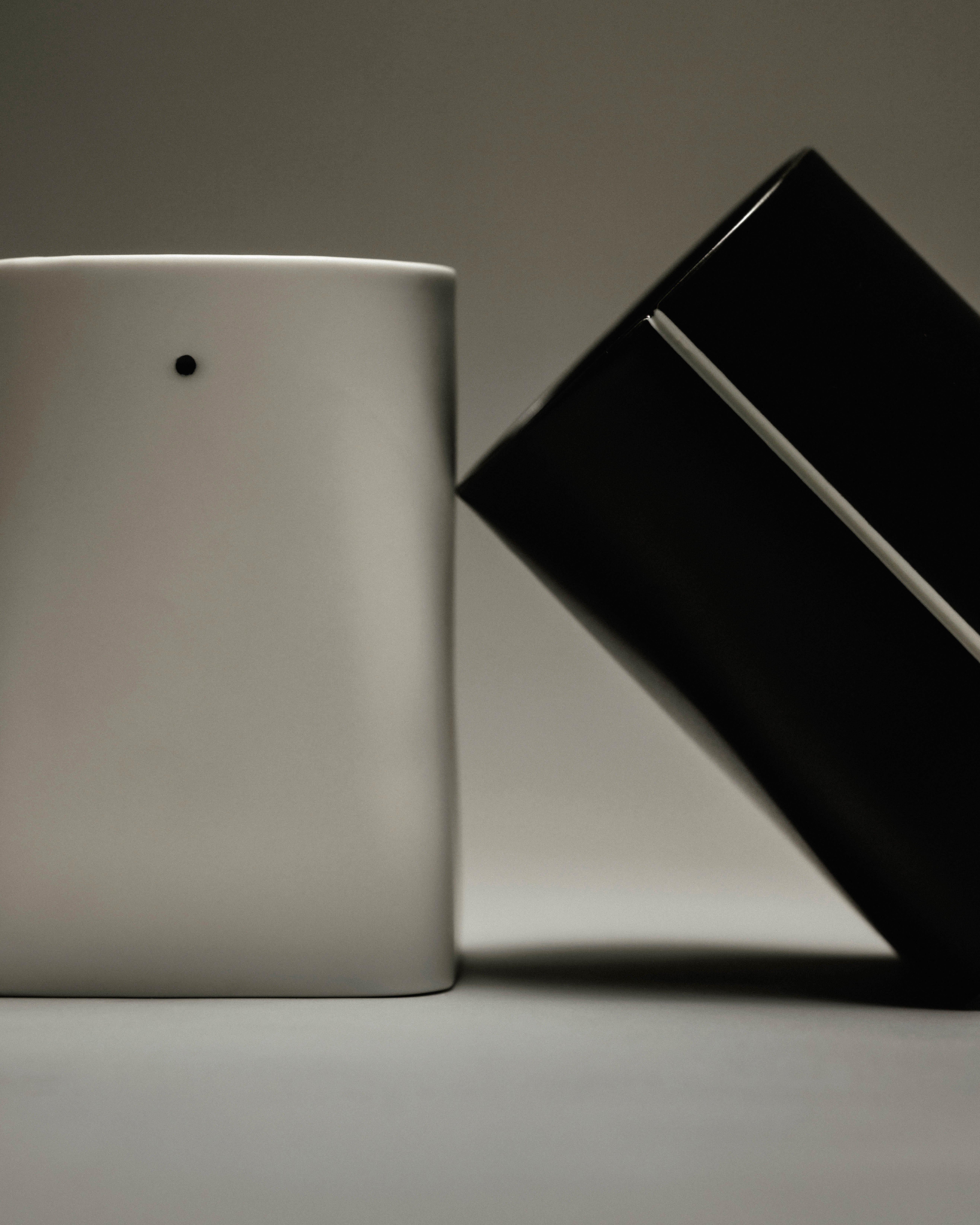 Symmetry marks Xiong’s introduction to tableware with a porcelain cup, plate, and bowl. Pushing against porcelain’s natural imperfections, the collection aims to achieve perfect symmetry and form. Painted with simple dots, lines, or circles along the groove at the exact center of each piece, Xiong attempts perfection with a material that doesn’t always cooperate. Symmetry also nods to the geometric shapes in Xiong’s furniture with complementary squares and circles sculpted into each vessel. Xiong traveled to Jingdezhen, the porcelain capital of the world, to manufacture her collection with the masters. Jingdezhen porcelain gets heated at higher temperatures, causing 6 out of every 10 pieces to break or explode in the kiln. Because of this, Jingdezhen porcelain is rarely exported or produced in large batches. Symmetry is one of the few Jingdezhen porcelain collections available outside of China with modern interpretations of the town’s traditional techniques.